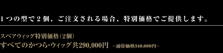 ナチュラルでは、そのようなお客様の要望にお答えしてスペアウィッグを同時にご注文されるお客様に特別な価格をご用意しました。